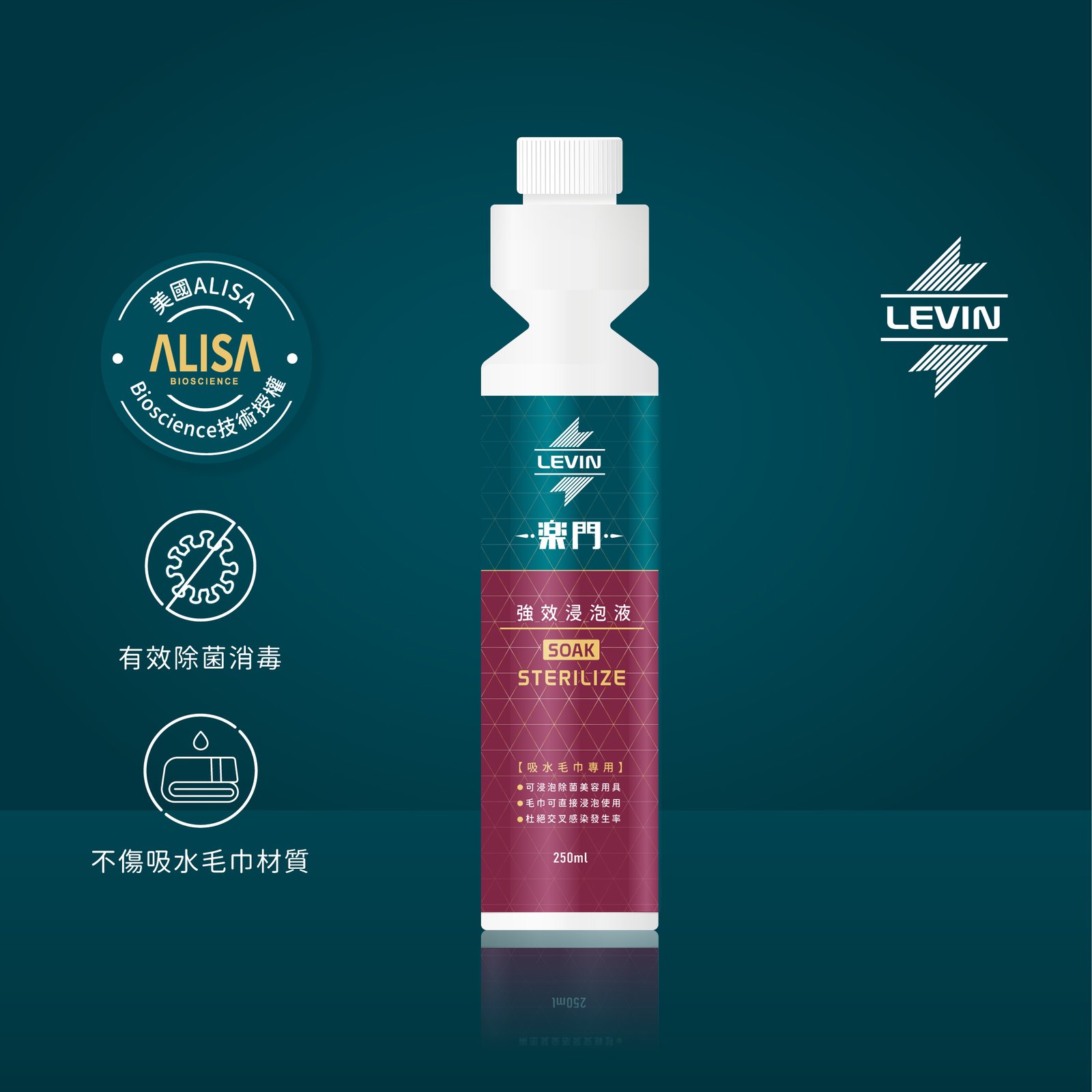 產品訴求:有效消毒,預防交叉感染、不傷吸水毛巾材質。